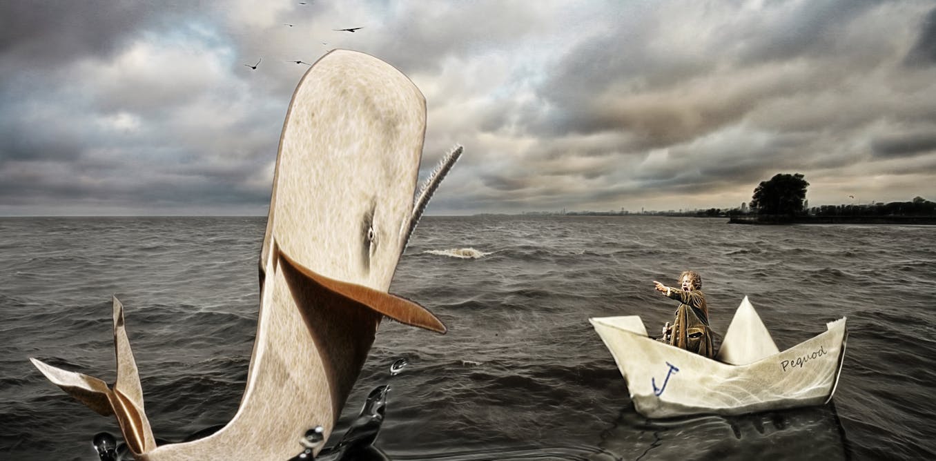 தன்னையொரு அரசனாகவே கருதிக்கொள்ளும் ஏஹாப், தன்னைச் சுற்றியே தனது சதுரங்கச் சேனையும் சுற்றும் எனக் கருதுகிறான். உண்மையில் எதிர்ப்புணர்வுள்ள அவனுடைய சக மாலுமிகளும்கூட அவனுடைய இறுமாப்பின் அதிகாரத்திடம் சரணடைகிறார்கள். ஒருவகையில் அதுதான் ஏஹாப் அவர்களுக்கு வழங்க நினைத்த பரிசலின் மேலுறையாக இருக்கலாம். அவனோடு சேர்ந்து இறவாத் திமிங்கலமொன்றை வேட்டையாடச் சென்று தங்கள் உயிரை ஈந்தவர்கள், அவனைப் போலவே இந்த முற்றுப்பெறாத வேட்டைக் கதையில் நித்தியத்துவம் பெறுகிறார்கள். அதனைக் காட்டிலும் வெறும் திமிங்கல எண்ணெய் வேட்டைக்காரர்களின் இழிவான வாழ்க்கையின் புகைக்கருமையைத் துடைப்பதற்கு வேறொரு வழியுமில்லை.